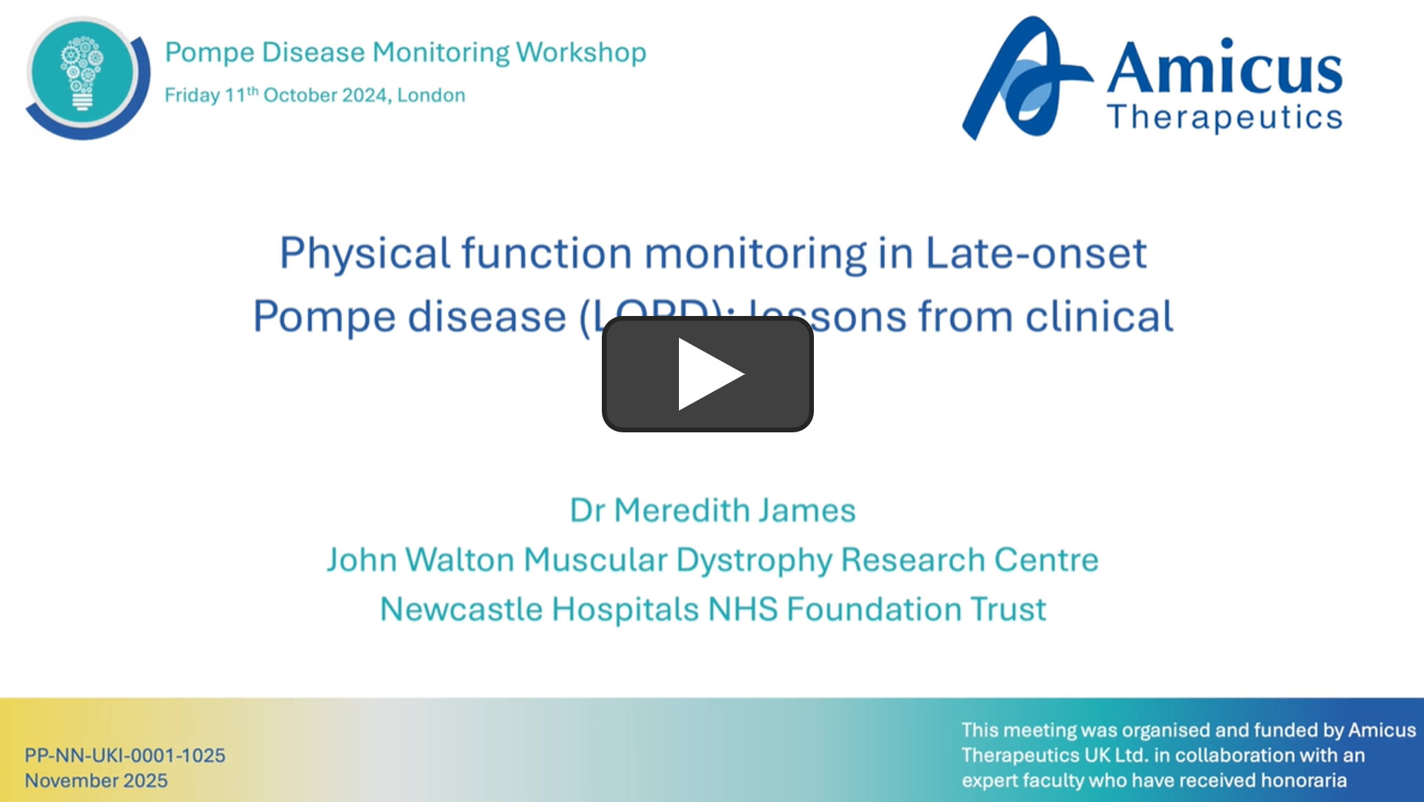 This video explores key assessments and tools that can be used to monitor the physical functioning of patients with late-onset Pompe disease (LOPD).